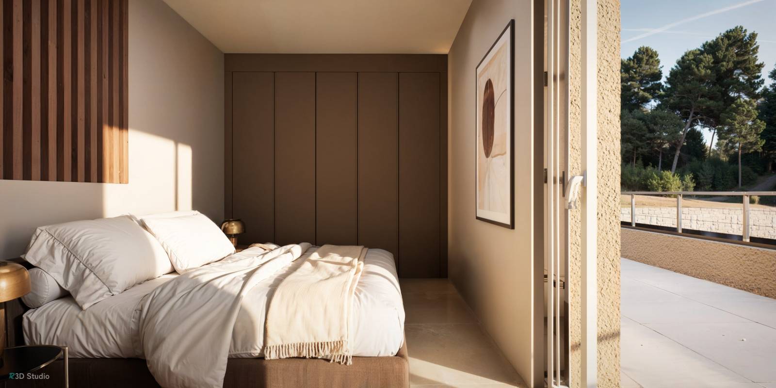 À l'étage, vous découvrirez deux autres chambres spacieuses, toutes deux avec dressing et salles de bains privatives. Grâce à leurs grandes baies vitrées, ces chambres sont baignées de lumière naturelle et offrent une vue panoramique spectaculaire sur les montagnes environnantes.